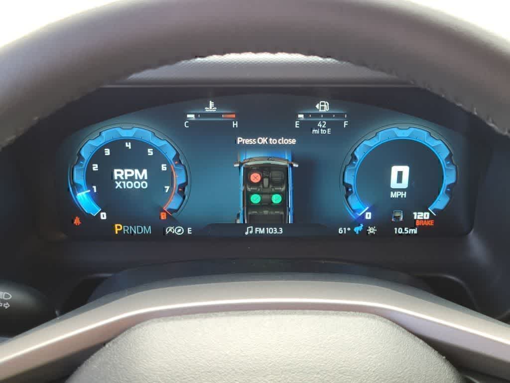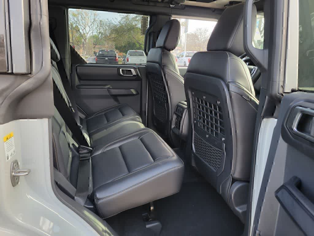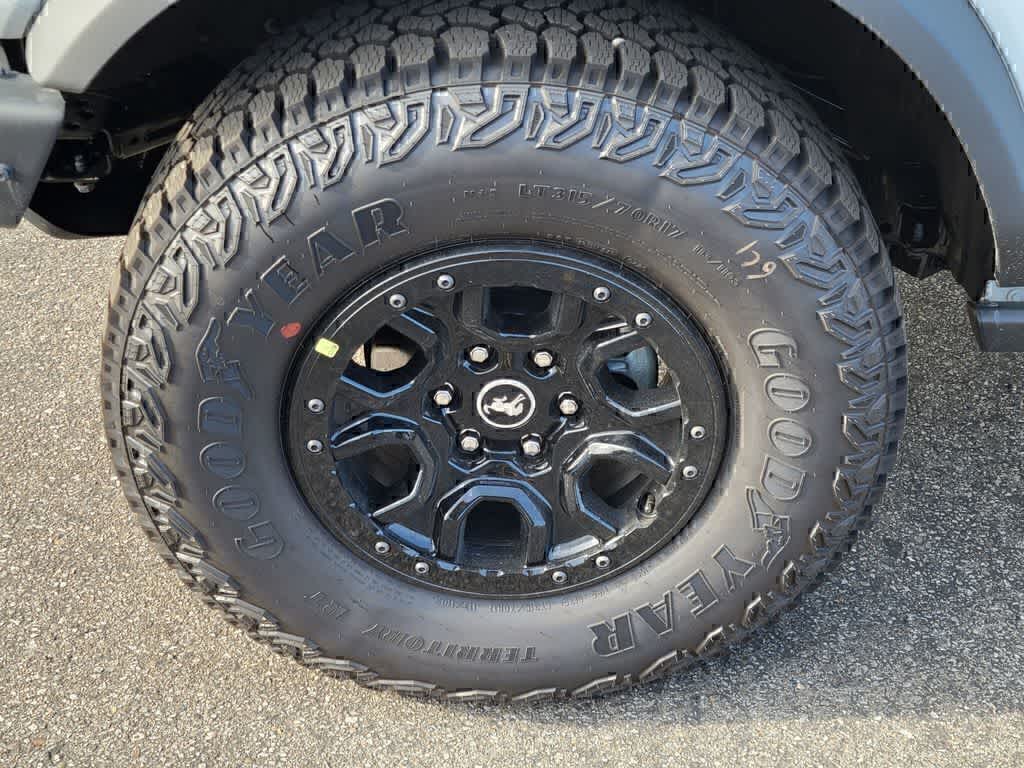 EQUIPMENT GROUP 334A LUX PACKAGE Rear Parking Sensors, Pro Power Onboard - 400W, Back side of center floor console, Dr & Pass Illuminated Sliding Visor Vanity Mirrors, Evasive Steering Assist, Heated Steering Wheel, Information on Demand Panel, Dual-Zone Electronic Automatic Temperature Control, air conditioning, Ford Co-Pilot360, Auto High-Beam Headlamps, Pre-Collision Assist w/Automatic Emergency Braking, pedestrian detection, forward collision warning and dynamic brake support, Blind Spot Information System (BLIS), Cross-Traffic Alert, Rear View Camera, backup assist grid lines, Lane-Keeping System, Lane-Keeping Alert, Lane-Keeping Aid and Driver Alert, Ambient Footwell Lighting, 2-Door Intelligent Access w/Lock/Unlock, Intelligent Access will also lock/unlock the swing gate, Dual Smart, SASQUATCH PACKAGE Wheels: 17 Matte Black Alloy, High Clearance Suspension, 4.7 Final Drive Ratio, electronic-locking front and rear axle, Front Stabilizer Disconnect, Tires: LT315/70R17 Rugged-Terrain, Position-Sensitive Bilstein Shock Absorbers, ENGINE: 2.7L ECOBOOST V6 GVWR: 6,180 lbs, SHADOW BLACK PAINTED HARD TOP Hard Top Sound Deadening Headliner, Rear-Window Defroster & Washer, TRANSMISSION: 10-SPEED AUTOMATIC trail control, trail turn assist and trail one-pedal driving, 4.46 Axle Ratio.