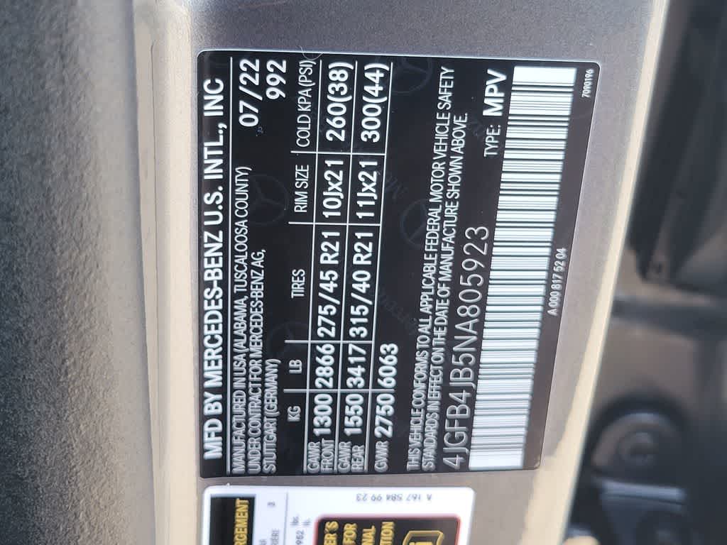 WHEELS: 21 TWIN 5-SPOKE Tires: 275/45R21 Fr & 315/40R21 Rr, PREMIUM PACKAGE Parking Assist Code, Surround View System, 115V Power Outlet, Burmester® Surround Sound System, PANORAMA POWER TILT/SLIDING SUNROOF, ILLUMINATED RUNNING BOARDS side sill panels painted in black, TRAILER HITCH Increased Towing Capacity, VENTILATED FRONT SEATS, HEATED STEERING WHEEL.